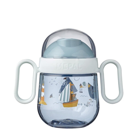 Vaso antiderrame 200 ml azul con barcos